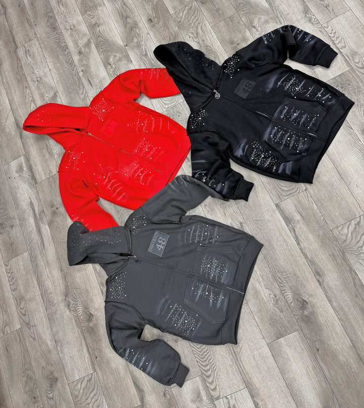 48 Rhinestone Zip Up